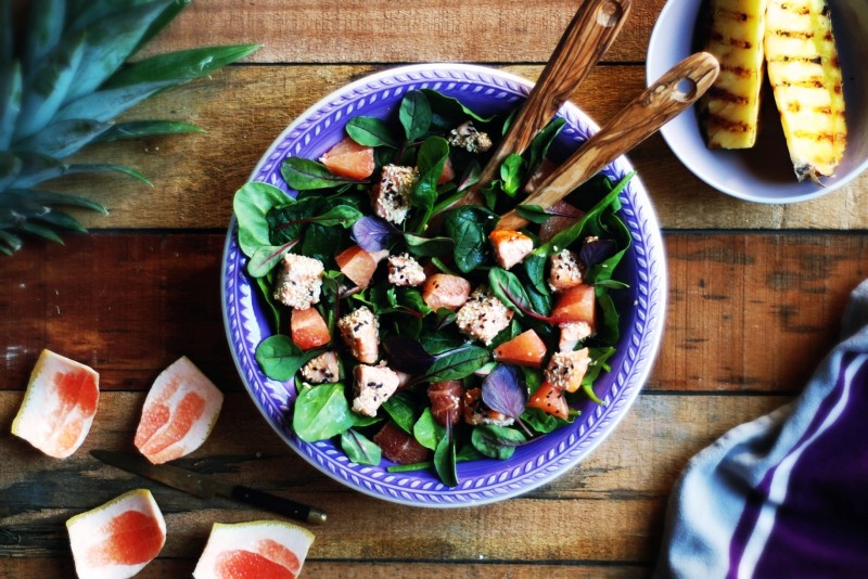 Sałatka z łososiem, grejpfrutem i szpinakiem