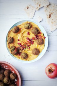 Falafele jaglane z rukolą! Hummus marchewkowy! Podpłomyki orkiszowo-kasztanowe!