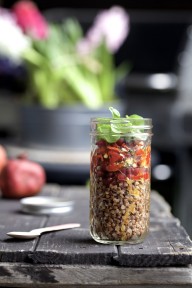 Gryka z pieczoną papryką, migdałami i owocem granatu