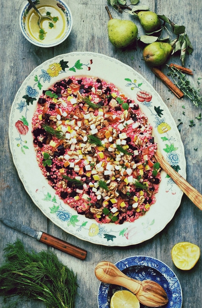 Kasza jaglana a’la kus kus z burakiem i gruszką