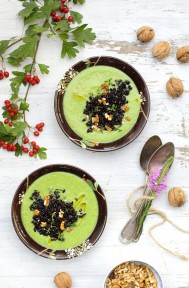 Zupa brokułowo-jarmużowa z czarnym ryżem i orzechem włoskim