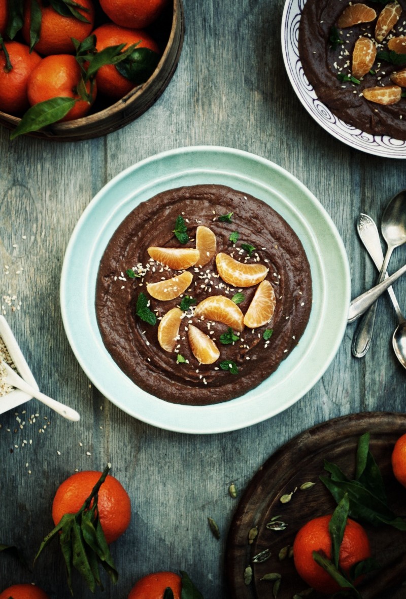 Budyń jaglano-owsiany z czekoladą i mandarynkami
