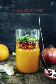 Zupa dyniowo-pomarańczowa z imbirem, granatem i bazylią