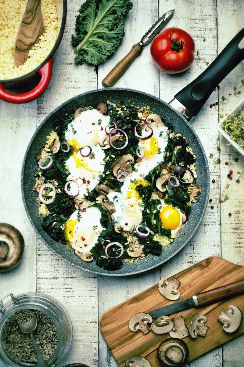 Jajka zapiekane z kaszą jaglaną i jarmużem