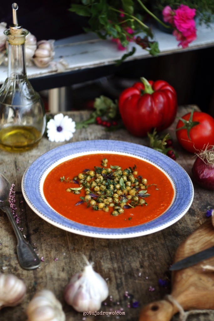 Zupa pomidorowo-selerowa z ciecierzycą i pesto